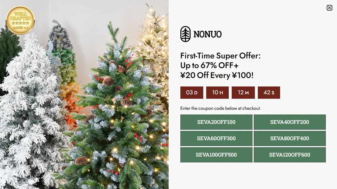 Say goodbye to the hassle of arranging branches! With NONUO’s Self-Collapsing Branches, simply stand the tree upright, and the branches fall into place. For storage, just flip the tree upside down and the branches collapse for easy packing.